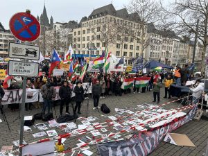 رۆژی شەممە ٢٤ی ژانڤیەی ٢٠٢٦ی زایینی و لە سەر بانگهێشتیی هێزە کوردستانیەکان و هەروەها رەوەندی کوردیی و کۆمەڵێک لە حیزبەکانی رۆژهەڵاتی کوردستان، شاری کۆڵنی ئاڵمان شاهیدی بەشداریی کۆمەڵێکی هەرە بەرچاو لە خەڵکانی شۆڕشگێڕی هەر چوار پارچەی کوردستان بە شێوەی بەشداری لە ڕێپێوان و خۆپیشاندانی بەرین بوو، کە تێیدا هاوکات لەگەڵ پاڵپشتیی و پشتیوانی لە بەرگری لە دەسکەوتە پێشکەوتنخوازانە و ئازادیخوازانەکان و بەرخۆدانی گەلی کورد لە رۆژاڤا، هەروەها هێرشە دڕندانەکانی هێزە ئیسلامیە توندڕەوەکان و پاشماوەکانی داعش دژ بە گەلی کورد و کۆمەڵکوژیی گەلەکەمان لە رۆژاڤای وڵات، بە توندیی ئیدانە کرا. لەم ئاکسیۆنە بەرینەدا، هاوکات لەگەڵ خوێندنەوەی شیعر و سروود و گۆرانی شۆڕشگێڕانە، هەروەها پەیامی حیزب و لایەن و کەسایەتیەکان پێشکەش بە بەشداربووان کرا.